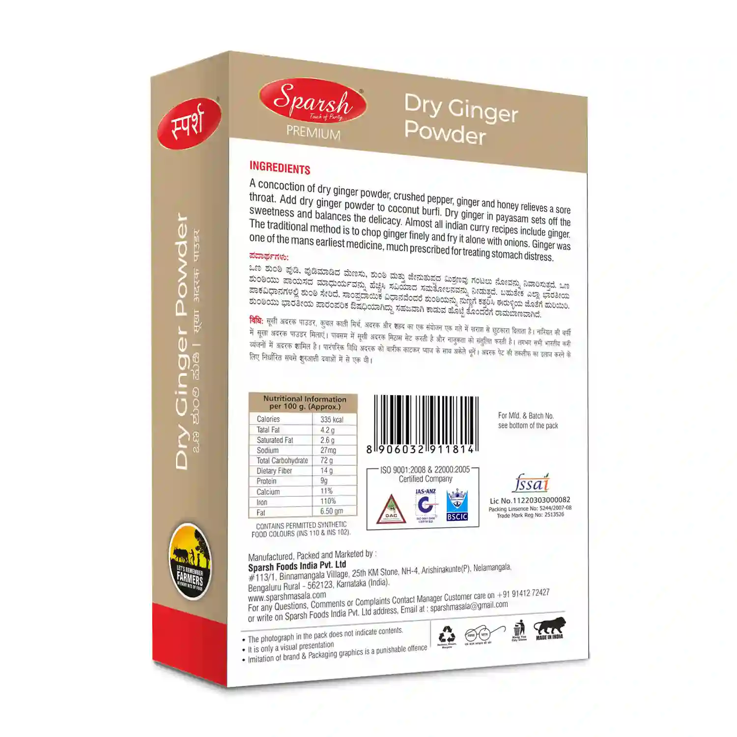 Sparsh Masala Dry Ginger Powder. Homemakers and chefs across India integrate Dry Ginger Powder into almost every dish. And no authentic Indian preparation is complete without these flavoursome spice blends that add to the overall taste that we’ve grown up to love and cherish. Sparsh Masala brings you pure, garden-fresh hand-picked spices and masalas and one of them is the Dry Ginger Powder.