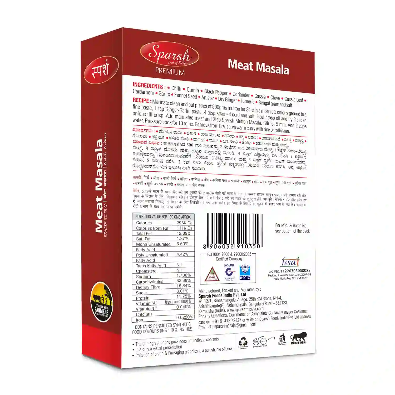 Sparsh Premium Meat Masala and meat dishes go hand in hand. Created by culinary experts, using a blend of exotic spices, Sparsh Premium Meat Masala is a product for enhancing non-veg dishes and is absolutely free from preservatives or spice extracts. Thanks to the ‘FlavourLock’ packing method, this product stays fresh and flavourful for longer.
