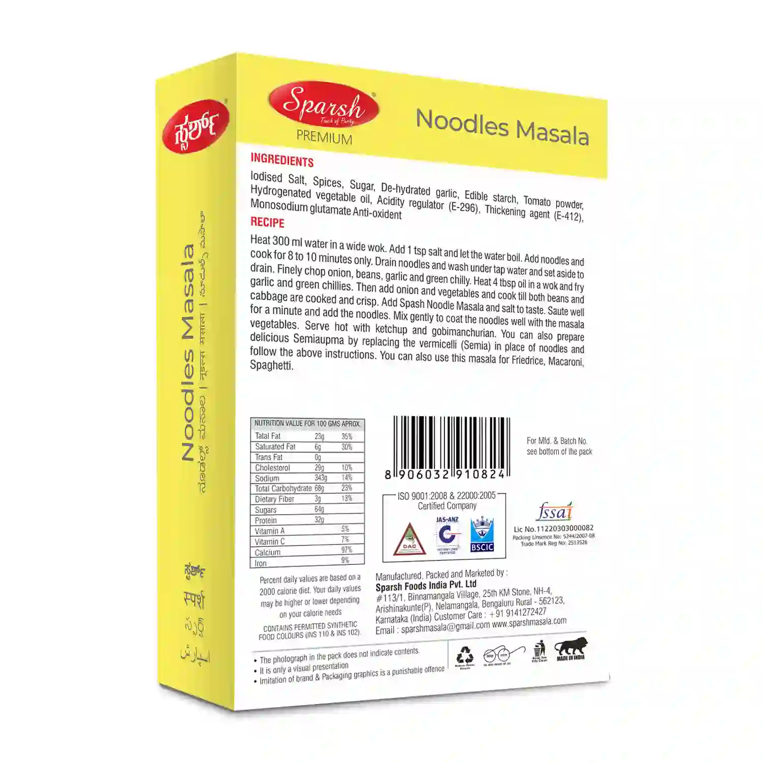 Sparsh Noodles Masala is an exotic blend made from the choicest of ingredients, that are handpicked in the right proportion, gently blended, and aroma only while cooking. Prepared by experts, the magic of aroma-locked Masala comes alive with great taste and flavor.