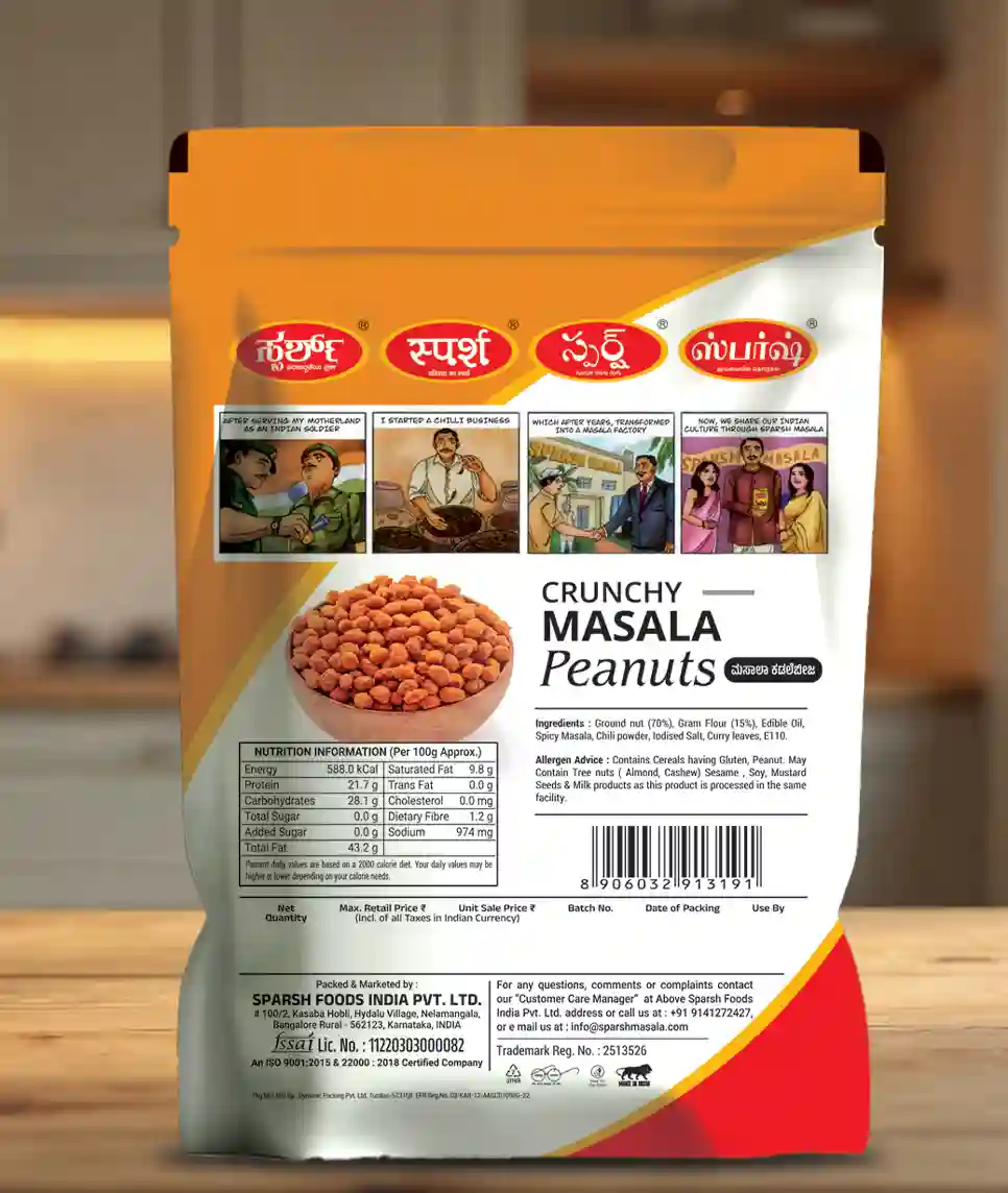 Experience the bold crunch and classic spice of Sparsh Crunchy Masala Peanuts.